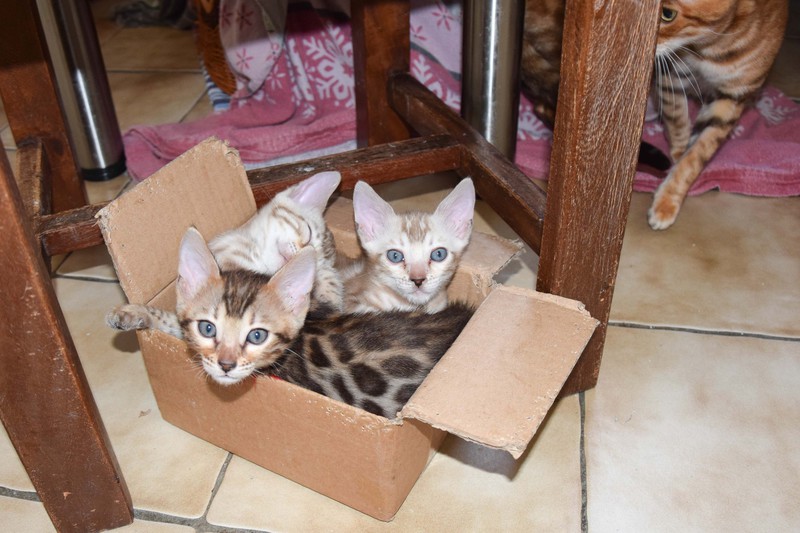 Am 6. Juli 2025 hat unsere liebevolle Verpaarung zwischen Angelgarden Styx und Madiba Ilon drei außergewöhnlich schöne Bengalkitten hervorgebracht: