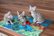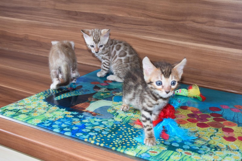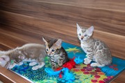 Alle drei Kitten zeigen bereits jetzt ein sehr menschenbezogenes, neugieriges Wesen und wachsen liebevoll in unserer Familie auf. Sie dürfen ab sofort besucht werden und sind ab dem